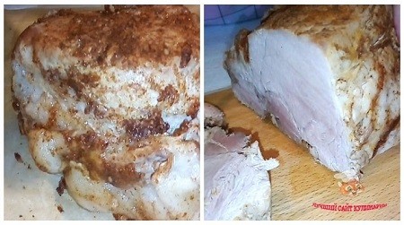 Минут через 10-15 уменьшаем огонь в духовке, и выпекаем наше мяско около часа-полтора (зависит от объема мяса).