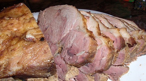 Потом достаем, аккуратно разрезаем рукав для запекания и ... или охлаждаем (используем как холодную закуску) или подаем горячим с гарниром. Хорошо с буженинкой красное полусухое вино))))) Бастардо, например.