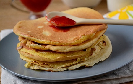 Напекла оладьи на кислом молоке из кукурузой муки. Вкусно.