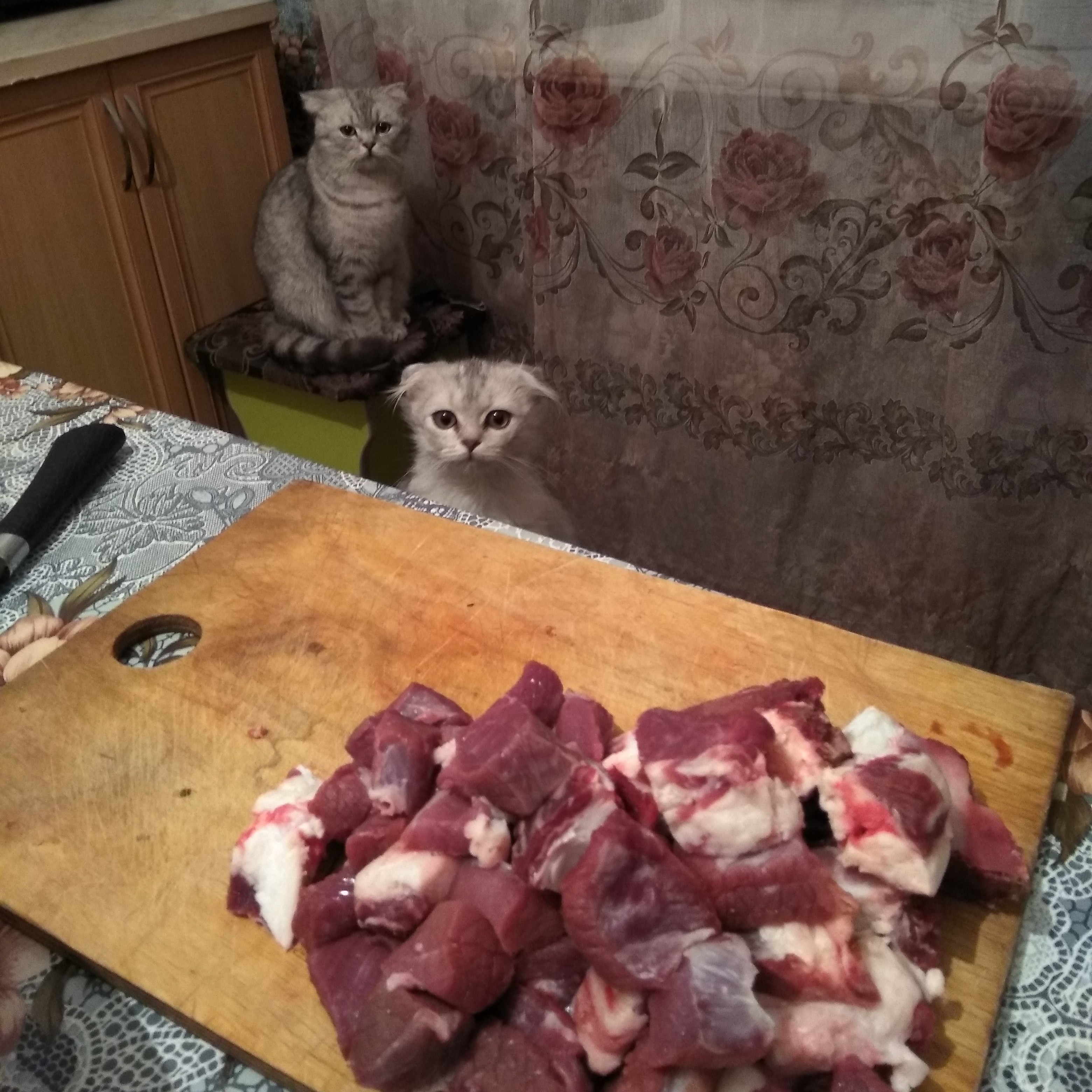 котятки прелесть! вислоухие....тот, что ближе к столу, такой несчастный