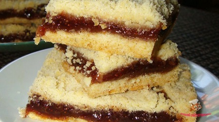![]() Ингредиенты: мука — 3 стак.; пачка масла; щепотка соды; щепотка соли. Для начинки ягоды с сахаром. Как вы поняли, тесто пресное, поэтому начинка должна быть сладкая и насыщенная. Пошаговый рецепт Масло предварительно заморозьте. Оно должно быть подморожено, с растаявшим маслом тесто не получится. Сразу можно включать духовку, потому что тесто готовится очень быстро. Муку просейте в миску, и начинаем натирать масло в муку. Будет легче натирать, если вы постоянно будете обмакивать масло в муку. Теперь перетрите пальцами муку и масло в крошку. Не стоит прям уж сильно перетирать, так до однородности. В крошку добавьте щепотку соли и соды по желанию можно заменить разрыхлителем (0,5 пакетика хватит). На противень выложите 1/3 часть крошки, смазывать не надо. Распределите по всей поверхности, немного утрамбовывая руками. Сформируйте бортик. Ягоды перетрите с сахаром. Для начинки можно использовать и варенье, а также творог с сахаром, тыкву с сахаром. А еще можно попробовать сделать такой пирог с сыром и колбасой. Когда распределяете тесто, главное, чтобы дно не просвечивалось. Выложили начинку, и присыпать остатками теста. Убираем пирог в духовку нагретую до 160-170°С на 20 минут. Когда достанете пирог, дайте ему остыть, и смело нарезайте и угощайтесь. -------------------- Подарки: (Всего подарков: 832 ) |