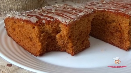 ![]() Ингредиенты: 100 мл кефира; 140 г меда; 100 г сахара; 180 г муки; 2 яйца; 1 ч.л. соды. Можно полить сверху глазурью: сахарная пудра — 3 ст.л.; вода — 1 ст.л. Пошаговый рецепт Яйца взбейте с сахаром до однородной массы. Затем добавьте мед, перемешайте и введите соду и кефир. Муку просейте, и добавляйте в тесто в 2-3 приема, перемешивая миксером до однородного состояния. Форму смажьте растительным маслом и вылейте тесто. Форма 18*26 см. Выпекайте пирог при температуре 180°С 30-35 минут. Дайте готовому пирогу немного остыть и извлеките из формы. Полейте его глазурью, или можно просто присыпать сахарной пудрой или даже приготовить шоколадную глазурь. Все по вашему желанию. -------------------- Подарки: (Всего подарков: 832 ) |