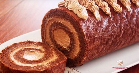 ![]() Ингредиенты: 4 яйца; 80 г сахара; 1 ч.л. ванильной эссенции или просто щепотка ванили; 40 мл молока; 40 мл растительного масла; 90 г муки (обязательно просеять); 1 ч.л. разрыхлителя; щепотка корицы; 30 г какао порошка. Для крема: 60 г шоколада; 240 г жирных сливок; 70 г сахарной пудры. Пошаговый рецепт Желтки отделите от белков. Взбейте отдельно белки до устойчивой белой массы. Взбивать около 5 минут. Отдельно взбейте желтки с сахаром, добавьте ваниль, влейте молоко, растительное масло и еще раз взбейте миксером. Добавьте просеянную муку и разрыхлитель, щепотку корицы и какао. Все еще раз взбейте и отправьте шоколадную массу в белковую, аккуратно перемешайте лопаткой. Форму застелите растительным маслом и вылейте тесто, равномерно его распределяя. Выпекать при температуре 180 градусов около 10-12 минут. Бумагу для выпечки присыпьте какао порошком, достаньте горячий рулет и сразу переложите его на бумагу с какао. А ту бумагу, на которой пекся рулет, снимите. Скрутите рулет еще горячим, заворачивая бумагу вовнутрь. Шоколад поломайте кусочками и добавьте 4 ст. л. сливок, уберите в микроволновку, чтобы растопилось. Взбейте 240 мл охлажденных сливок с сахарной пудрой, добавьте шоколадную массу и еще раз взбейте миксером. Крем готов. Разверните рулет, смажьте кремом, и снова заверните в бумагу для выпечки. Уберите в холодильник на 1 час. Украсьте рулет кремом и подавайте к столу. » Кликните сюда для просмотра оффтоп текста.. «