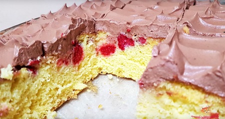 ![]() Ингредиенты: ДЛЯ ТЕСТА: яйца — 5 шт.; сахар — 1 ст.; ванилин — по желанию; чуть соли; молоко — 5 ст.л.; мука — 5 ст.л. с горкой; разрыхлитель — 0,5 ч.л.; малина — 300 г (любые ягоды по вкусу). ДЛЯ Заливки: молоко — 300 мл; сахар — 1 ст.л. ДЛЯ КРЕМА: шоколад 70% — 100 г; сливки 30% — 200 мл. Пошаговый рецепт Охлажденные белки взбить со щепоткой соли. Затем постепенно ввести сахар. Когда белки и сахар взбились, можно добавлять желтки, не переставая взбивать. В яичную массу добавьте молоко и муку (обязательно просейте). Неразъемную форму смажьте сливочным маслом и немного присыпьте мукой, вылейте тесто. Сверху немного утопите в тесте ягоды, и отправьте в духовку, нагретую до 190 градусов на 5 минут, затем уменьшите градусы до 180 и выпекайте еще 30 минут. В горячем молоке растворите сахар, и за пару минут до готовности пирога залейте его горячим молоком. Разломайте шоколад и залейте его горячими сливками. Дайте остыть и уберите на 20-30 минут в холодильник. Затем взбейте шоколадную массу и покройте верх пирога. Уберите пирог на 1 час в холодильник. » Кликните сюда для просмотра оффтоп текста.. «
