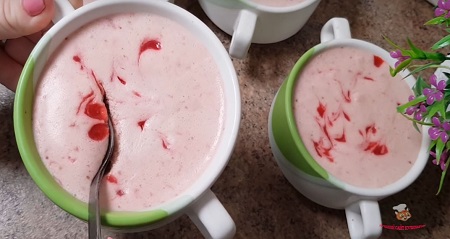 ![]() Ингредиенты: сметана — 300 мл; молоко — 150 мл; сахар — по вкусу (у меня 4 ст.л.) можно использовать заменитель; клубника — 300 г (или любые другие свежие или замороженные ягоды); желатин — 1,5 ст.л.; вода — 120 мл. Пошаговый рецепт Залейте желатин остывшей прокипяченной водой и оставьте до набухания. Добавьте к ягодам немного сахара и взбейте их блендером. Добавьте в сметану сахар, молоко и ванилин. Взбейте миксером и добавьте большую половину взбитых ягод. Растопите желатин на водяной бане, добавьте пару ложек сметанной смеси, перемешайте. Влейте желатин к сметане и ягодам. Все перемешайте и разлейте по порционным чашкам или креманкам. Верх десерта украсить оставшимся ягодным муссом. Уберите в холодильник до застывания. » Кликните сюда для просмотра оффтоп текста.. «