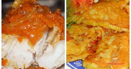 ![]() Хек с овощами в духовке - это блюдо, которое можно готовить в любой сезон. Овощи всегда можно комбинировать, а хек всегда есть в продаже в замороженном виде. Вкусное блюдо, которое понравится даже детям, подходит для обеда или ужина. Получится питательно и без лишнего жира. Ингредиенты: Хек — 350-400 г Помидоры — 200 г Лук репчатый — 1 шт. Сладкий перец — 100 г Морковка — 100 г Масло растительное — 1 ст. ложка Соль — по вкусу Черный перец — по вкусу Как приготовить Рыбу почистите и нарежьте порционными кусочками. Форму для запекания смажьте растительным маслом и выложить рыбу. Рыбу по вкусу посолите и поперчите. Нарежьте овощи: помидоры и морковку небольшими дольками, лук и перец полосками. Выложите овощи к рыбе. Запекайте 25-30 минут в духовке при температуре 180-190 градусов. Приятного вам аппетита! -------------------- Подарки: (Всего подарков: 832 ) |
