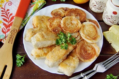 Судак жареный с луком на сковороде