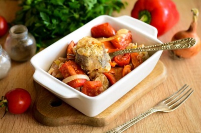Хек с овощами в духовке