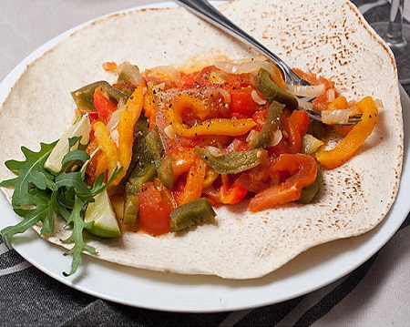 ![]() Готовим вегетарианский ароматный гарнир из разноцветных перцев. Подавайте это блюдо горячим или холодным, оно хорошо в качестве гарнира и легкого самостоятельного блюда, если подать его со свежими лепешками или лавашем. Вам понадобится: Перец сладкий красный (паприка) - 2 шт. Перец сладкий желтый - 2 шт. Перец сладкий зеленый - 2 шт. Растительное масло - 12 мл Помидоры красные - 600 г Лук репчатый (100 г) - 2 шт. Чеснок дольки - 4 шт. Приготовление: Вымойте перцы, оботрите их и разрежьте пополам вдоль, удалив серединку с семенами. Разложите на противне, застеленном фольгой срезами вниз, смажьте маслом и запекайте в разогретой до 200 градусов С духовке (на верхнем уровне) до мягкости. Запекайте 20-25 минут, а в это время займитесь другими овощами. Помидоры залейте кипящей водой и оставьте на минуту. Затем снимите с них кожицу. Лук нарежьте кольцами, чеснок измельчите. На слегка смазанную маслом сковороду положите лук с чесноком и готовьте на небольшом огне до мягкости, помешивая время от времени. Очищенные от кожицы помидоры нарежьте некрупными дольками. Когда лук с чесноком станут мягкими, но без изменения цвета, добавьте к ним помидоры и измельченный перчик чили. Продолжайте готовить на небольшом огне овощи, периодически перемешивая их. Когда перец в духовке станет мягким, а кожица вздуется и потемнеет, достаньте его и сложите в кастрюлю или пакет и плотно закройте. Оставьте на 10 минут, затем достаньте и удалите кожицу. Она должна сниматься как чулок. Очищенный перец нарежьте полосками и добавьте в сковороду к луку с чесноком и помидорам. Посолите, поперчите и готовьте еще 5 минут. -------------------- Подарки: (Всего подарков: 832 ) |