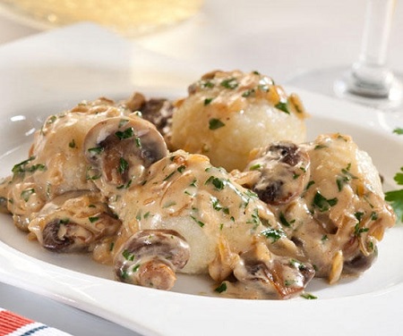 ![]() В качестве гарнира сегодня можно подать картофельные тефтели с грибным соусом. На 10 порций вам потребуется: Масло сливочное несоленое Яйцо куриное сырое - 1 шт. Картофель - 1 кг Грибы шампиньоны - 400 г Сливки (20%) - 200 мл Мука пшеничная высшего сорта - 1 ст. л. Приготовление: 1. Картофель почистить и отварить до готовности. 2. Воду слить, добавить яйцо и 50 мл сливочного масла. 3. Из пюре сделать тефтельки, обвалять их в муке и обжарить со всех сторон до золотистого цвета. 4. Лук порезать на мелкие кубики и обжарить на растительном масле. 5. Грибы нарезать небольшими кусочками, добавить к луку и продолжать жарить. 6. Добавить щепотку муки, добавить соль и перец и сливки, немного потушить. 7. Форму для запекания смазать сливочным маслом, переложить тефтели, полить их соусом и поставить в разогретую до 180 градусов С духовку на 5 минут. -------------------- Подарки: (Всего подарков: 832 ) |