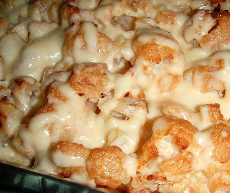 ![]() Очень сытный и вкусный гарнир, который может выступить и как самостоятельное блюдо. Готовим гратен из цветной капусты. Вам потребуется: Цветная капуста Сливочное масло Майонез Яйца Тертый сыр Приготовление: Отварить в подсоленной воде разобранную на соцветия цветную капусту до полуготовности. Смазать противень сливочным маслом. Выложить соцветия капусты одним слоем. Взбить 2 яйца с 2 ст.л. с горкой майонеза, посолить. Залить полученной заливкой капусту, так, чтобы были промазаны все соцветия. Запекать при температуре 180 градусов С до румяной корочки. Посыпать тёртым сыром и запекать ещё 5-7 минут до расплавления сыра. -------------------- Подарки: (Всего подарков: 832 ) |