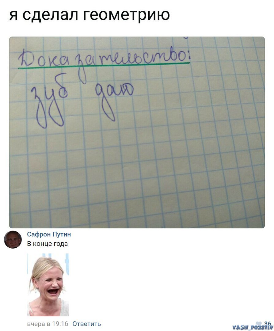 - Так что ты опять натворил?! - Да всё в порядке! Я просто сказал, что ты маляр и можешь помочь с покраской. - Лучше бы ты в туалете покурил. Отец смотрит Вовочкин дневник. - Так, арифметика – 2, русский - 2, география – 2. А это что такое, дрист – 2? Вам чего теперь и в туалете оценки ставят? - Это по древней истории! В школе: - Ну, что тут у нас? Так, свойства ромба. Ну, чертим ромб! Вы что, не знаете, как ромб выглядит? Буби, буби! Вот так, молодцы! -------------------- Подарки: (Всего подарков: 832 ) |