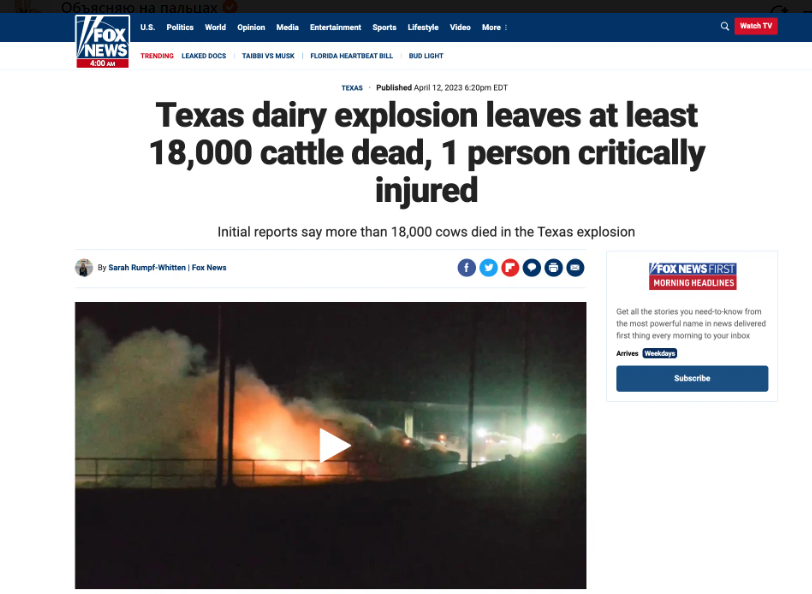 В США из-за взрыва на ферме погибло 18000 коров. Хиросима по Техасски