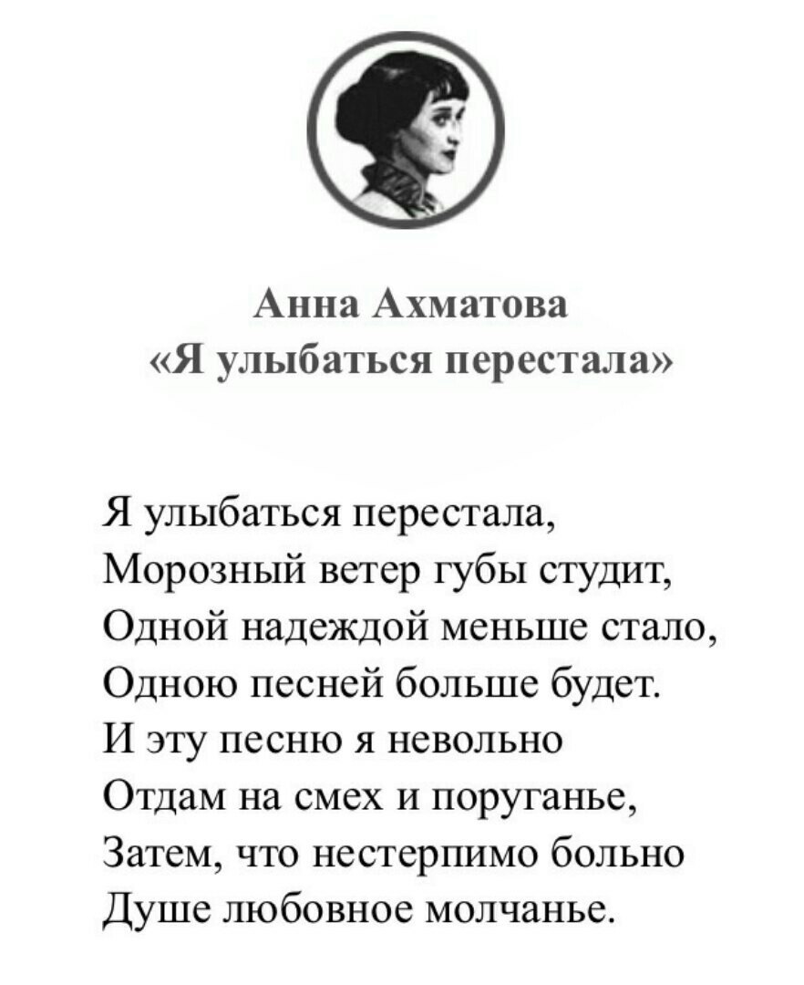Приходи. Я живая. Мне больно. Этих рук никому не согреть, Эти губы сказали: "Довольно!" Каждый вечер подносят к окну Мое кресло. Я вижу дороги. О, тебя ли, тебя ль упрекну За последнюю горечь тревоги! Не боюсь на земле ничего, В задыханьях тяжелых бледнея. Только ночи страшны оттого, Что глаза твои вижу во сне я. © Анна Ахматова -------------------- Ты имеешь право проживать свои чувства © Необыкновенный плейлист Зои » Кликните сюда для просмотра оффтоп текста.. « Я Вконтакте - vk.com/shakudancer Моё творчество - https://vk.com/helazeez https://stihi.ru/avtor/shakudancer Каждый танец как отдельная черта характера и чем богаче ваш арсенал различных видов танца - тем богаче ваш характер © Шаку -------------------- Подарки: (Всего подарков: 643 ) |