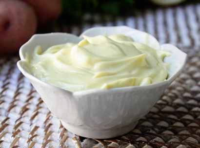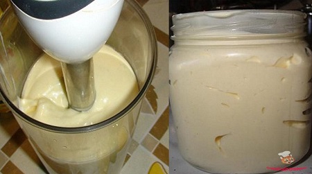![]() Ингредиенты: яйцо (берите только домашнее); 250 мл. растительного масла (главное, чтоб без запаха и рафинированное); соль — 1/3 ч.л.; сахар — 1 ч.л.; лимонный сок — 1 ст.л. Пошаговый рецепт Скажу сразу, взбивайте майонез, сразу в той емкости, в которой и будете его хранить. Итак наливаем растительное масло, добавляем соль, сахар, лимонный сок, и яйцо. Погрузите блендер в емкость, следите, чтобы желток, под сам блендер, плотно прижмите его ко дну. Мы сначала будем взбивать именно желток. Включаем блендер, и взбивая иногда приподнимаем его. Не следует сильно елозить им по всей банке. Взбивать домашний майонез в блендере 1-2 минуты. Если добавить в такой майонез чеснок и огурчики мелко нарезанные. получим соус тартар, а если чайную ложку горчицы, тогда майонез Провансаль. -------------------- Подарки: (Всего подарков: 832 ) |