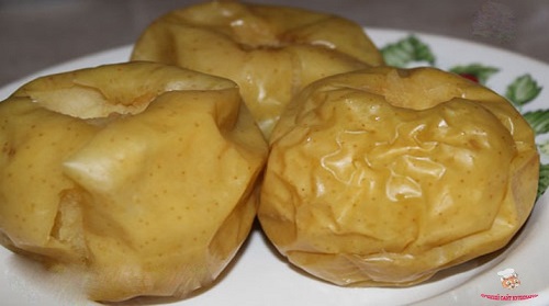 Понадобится: 100 г творога 0,5 кг яблок 5 г корицы ванилин немного сахара изюм, орехи Приготовление запеченных яблок: Вымойте яблоки, удалите сердцевину, не разрезая яблока. Оставьте на дне около 1-2 см, т.е. отверстие не должно быть сквозным. Начините яблоки на 3/4 получившейся начинкой. Нагрейте духовку до 180-200 °С и запекайте яблоки до готовности (20-30 минут). Время приготовления яблок зависит от сорта. Можно подавать этот десерт, как в холодном, так и в горячем виде. 2. Запеченные яблоки с орехами и изюмом Понадобится: 3 яблока 100 г изюма 30 г орехов кешью 5 г корицы 1 ч.л. сахарной пудры 40 г сахара Приготовление запеченных яблок: Соедините корицу, изюм и сахар. Удалите сердцевину, не разрезая яблоко. Наполните яблоки приготовленной начинкой. Запекайте в духовке или в микроволновке около 10-15 минут. Выделившийся в процессе приготовления яблочный сок с корицей прогрейте в течение 1-2 минут, он должен немного загустеть. Полейте им яблоки, посыпьте их сахарной пудрой. Украсьте орешками. 3. Запеченные яблоки в тесте 0,5 кг слоеного теста 7 средних яблок сахар 1 яйцо Приготовление запеченных яблок: Яблоки очистите от кожуры, вырежьте сердцевину. Тесто раскатайте и порежьте на длинные полоски (их ширина должна быть около 2 см). При помощи кисти смажьте полоски яйцом. Полоску теста начинайте оберните вокруг яблока, начиная снизу по спирали. Смазанная сторона теста должна касаться яблока. Слегка нахлестывайте каждый верхний ряд на предыдущий. Центр яблока посыпьте сахаром. Выпекайте 30-40 минут при температуре 175-180 °С, тесто должно зарумяниться. Готовое яблоко можно смазать сверху медом и посыпать сахарной пудрой. Печеные яблоки отдают свой сок тесту, которое получатся очень нежным и приятным на вкус. 4. Запеченные яблоки с тыквой 0,5 кг яблок 100-150 г тыквы 2 ст.л. корицы 1-2 ст.л. сахара Приготовление запеченных яблок: Яблоки вымойте, обсушите, выньте сердцевину. Тыкву натрите на терке, добавьте сахар, корицу. Нафаршируйте яблоки начинкой. Выложите яблоки в форму, добавьте на дно чуть-чуть воды. Закройте их сверху фольгой и запекайте 20 минут при 180°С. Затем фольгу снимите, посыпьте еще сахаром запекайте яблоки ещё 10-15 мин. Запеченные яблоки с тыквой можно подать как самостоятельное блюдо или с рассыпчатым рисом. 5. Запеченные яблоки, тушенные в вермуте сок половины лимона 3 яблока 3 ч.л. меда 10 гр. сливочного масла корица 10 гр. сладкого белого вермута Приготовление запеченных яблок, тушенные в вермуте: Нагрейте духовку до 180 °С. Яблоки очистите и удалите сердцевину, разрезав яблоко пополам. Обмажьте их лимонным соком, чтобы они не потемнели. Форму немного смажьте маслом. Выложите яблоки. В серединку каждого яблочка положите по 1 ч.л. меда и маленькому кусочку сливочного масла. В форму налейте вермут. Выпекайте около 30-40 минут, периодически поливая яблоки соусом, выделяющимся в процессе приготовления. После того, как они будут готовы, оставьте их на 10-15 минут, затем переложите яблоки на тарелку, полив соусом и посыпьте их сверху корицей. -------------------- Ты имеешь право проживать свои чувства © Необыкновенный плейлист Зои » Кликните сюда для просмотра оффтоп текста.. « Я Вконтакте - vk.com/shakudancer Моё творчество - https://vk.com/helazeez https://stihi.ru/avtor/shakudancer Каждый танец как отдельная черта характера и чем богаче ваш арсенал различных видов танца - тем богаче ваш характер © Шаку -------------------- Подарки: (Вс