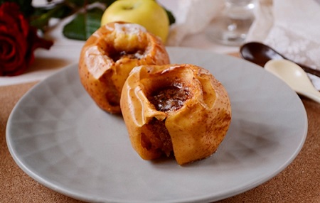 ![]() Ингредиенты: 4 больших яблока, 60 г сахара, 1 чайная ложка корицы, 50 г грецких орехов, 100 г смеси любых сухофруктов, 40 г сливочного масла, 200 мл горячей воды. Приготовление: Разогреть духовку до 190 градусов. Используя острый нож, вырезать сердцевину у яблок. Смешать в миске сахар, корицу, мелко нарезанные орехи и нарезанные сухофрукты. Заполнить каждое яблоко начинкой и выложить сверху кусочек сливочного масла. Налить горячую воду в форму для выпечки и выложить яблоки. Запекать от 30 до 45 минут, пока яблоки не станут мягкими. Процесс запекания позволяет придать яблокам неповторимый аромат и нежную тающую текстуру, именно поэтому запеченные яблоки так любимы многими. Данный десерт дает возможность экспериментировать с различными начинками, поэтому готовить его уж точно никогда не надоест. Предлагаем начать прямо сейчас! -------------------- Подарки: (Всего подарков: 832 ) |