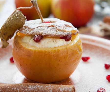 1. Печенные яблоки с корицей и творогом