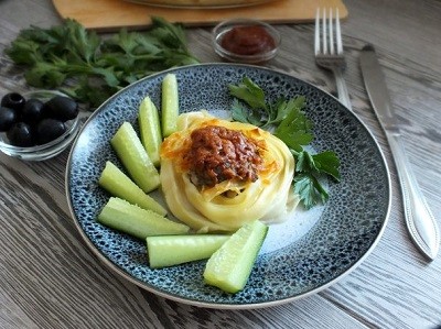 ![]() Чтобы разнообразить блюда из макарон, обратите внимание на предложенный рецепт. Минимальный затрат продуктов. Готовится в духовке. В результате вкусный и сытный обед или ужин, который порадует семью. Чтобы блюдо получилось нежным, куриный фарш лучше сделать смешанным, не только из грудки. Укроп вы вполне можете заменить на любимую вами зелень. В остальном гнёзда с курицей готовятся просто и с рецептом справится даже начинающая хозяйка. Учитывайте особенности своей духовки, возможно времени потребуется чуть меньше или больше. Ингредиенты: Макаронные гнёзда — 5 шт. Куриный фарш — 250 г Лук репчатый — 1 шт. Укроп — 1/2 пучка (маленький) Сыр — 50 г (твердых сортов) Масло растительное — 2 ст. ложки Как приготовить Лук натрите на крупной терке, укроп мелко нарежьте, переложите в чашу. Добавьте в чашу фарш, соль, перец. Перемешайте. Если фарш сильно густой, добавьте пару ложек воды. Возьмите форму с бортиками. Выложите макаронные гнёзда. Распределите фарш между гнёздами. В форму налейте горячей воды до середины гнёзд. Добавьте растительное масло. Включите духовку на 180 градусов. Форму закройте фольгой и поставьте в духовку на 30 минут. Через 30 минут достаньте форму, снимите фольгу, посыпьте тертым сыром и опять поставьте в духовку на 10 минут. По истечении времени достаньте гнезда из духовки. Приятного аппетита! -------------------- Подарки: (Всего подарков: 832 ) |