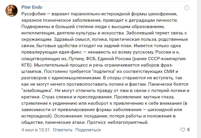 А больше всех для разжигания русофобии в мире (да и внутри страны) делают российские власти! Вывод малолетки( Россия,, виновата,, лишь в том, что не легла под англо-саксов. А они так хотели..... -------------------- Осторожно—душа!Не подходи—поранишь, убьёт.....