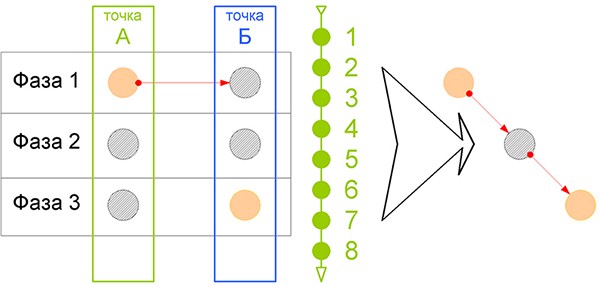 а теперь вернёмся к яблоку на столе, которое решило путешествовать из точки А в точку Б (посмотрим на рисунок)...