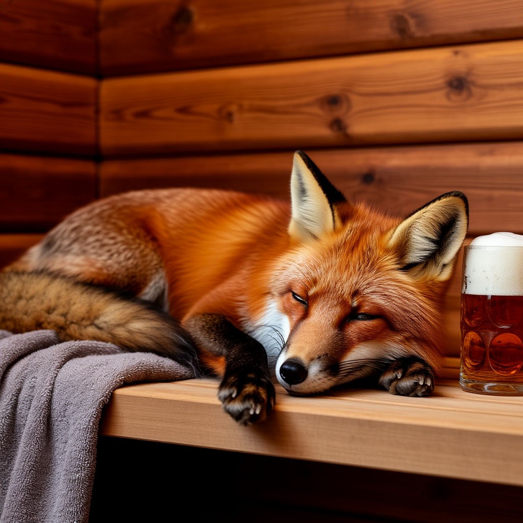 » Кликните сюда для просмотра оффтоп текста.. « Вы весьма любезны, изобразив меня, пьяного лиса в ванне. Да, в ней приятно, но по условиям календаря я должен находится в сауне. Позволю себе представить сгенерированный Шедеврумом образ моей лисьей персоны. Мне представляется, что в нём более точно нашло отражение того, что задано календарём... )) Лис получается прищуренный... правда, я пьяных лисов не видывала) может он как раз так и выглядит) » Кликните сюда для просмотра оффтоп текста.. « Вы почти угадали, проницательнейшая Секлетея Абрамовна! А, вот, что предложил мне Шедеврум, дабы подчеркнуть хмельное состояние лиса. А именно: прикрытые глаза и... поставленную рядом с лисом не початую кружку пива.