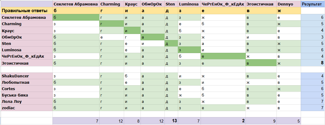 Ты тоже на два балла поднялась, когда ответы поменяла. И Тюте поверила. И на 1 ухудшила, я в первом варианте Люми правильно нашла) -------------------- Подарки: (Всего подарков: 880 ) |