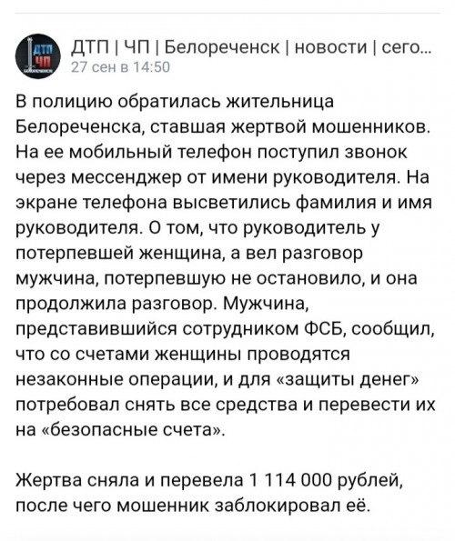 После этого звонки прекратились, и пенсионерка позвонила в ЦБ РФ, чтобы узнать, когда вернут деньги. Там ей пояснили, что весь период времени она общалась с мошенниками.