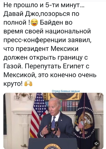 Бидон опять молодец,куда уж нашему Брежневу с его сиськимасиськи🤡🤡🤣🤣- Хочу поблагодарить израильтян и палестинцев. Извините, президента Сиси из Египта.