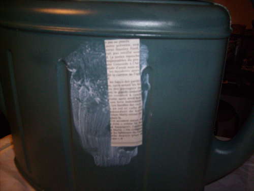 3-Декор подставки Работа по изготовлению подставки для зонтов очень простая. Практически все готово. Осталось только украсить поверхность лейки – подставки. Для этого можно использовать всевозможные картинки. Мы решили выбрать самый простой метод, и украсить вырезками из газет.