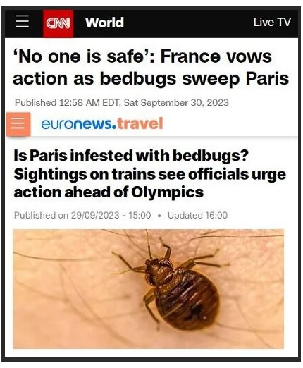 Но вернёмся к Франции, там у них сейчас полнейший аврал, поскольку эти вредные насекомые буквально везде - от аэропортов до гостиниц, а на носу ж Олимпиада. Вот сюрприз то будет гостям и спортсменам!