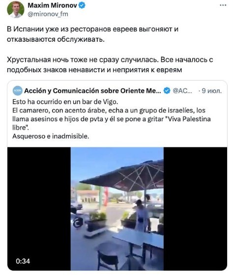 Ранее Мадрид также призывал к европейскому эмбарго на поставки оружия еврейскому государству и индивидуальным санкциям против тех, кто препятствует урегулированию ситуации на основе принципа создания двух государств.