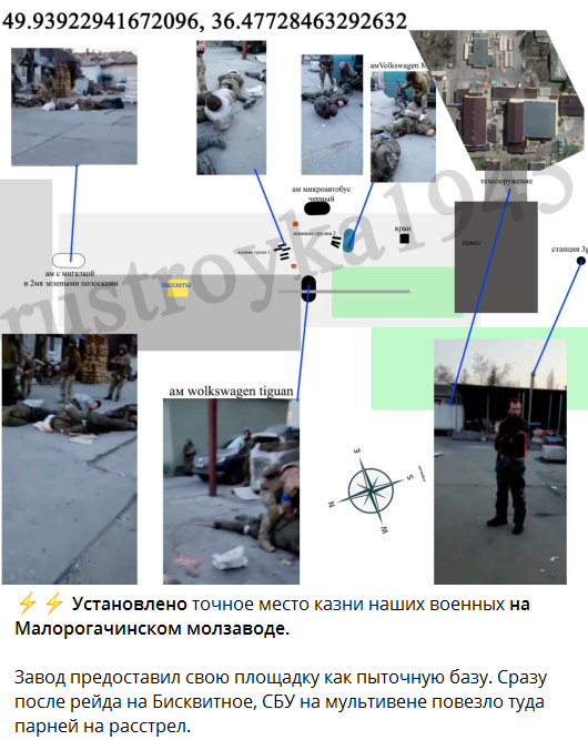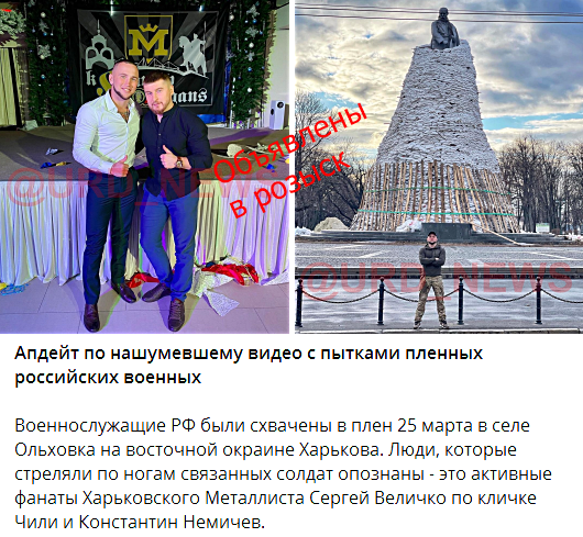 Определены, примерные координаты и личности ответственных за издевательства над российскими солдатами под Харьковом. Украинцы прострелили ноги и снимали на камеру избитых до смерти солдат на западной окраине села Малая Рогань под Харьковом. Активисты опубликовали точные координаты места, где происходила съемка — 49.939247, 36.477169. Кроме того, спустя меньше, чем сутки, после публикации видео, были вычислены и исполнители — одним из них оказался 28-летний Сергей Величко, известный под псевдонимом «Чили». В военных действиях он участвовал в составе полка «Азов» (запрещен в РФ), но его личность известна многим не за военные успехи — лидер харьковских националистов сидел в тюрьме за рэкет, бандитизм, вымогательства и похищение людей, но был выпущен из-под стражи после начала спецоперации на Украине. Еще один ответственный за расстрел российских солдат — командир батальона харьковской ячейки территориальной обороны Константин Немичев.