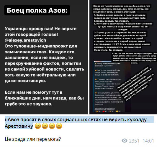 Лола, скорей всего большинство свято верит, что мирное население не страдает, вчера прочитала почти искренние удивления ночного гостя, когда Инна спросила за что на нее сыпятся бомбы, там же полностью заблокирована текущая ситуация, народу выдают искажённую информацию, где армия РФ спасает Украину от зверей.