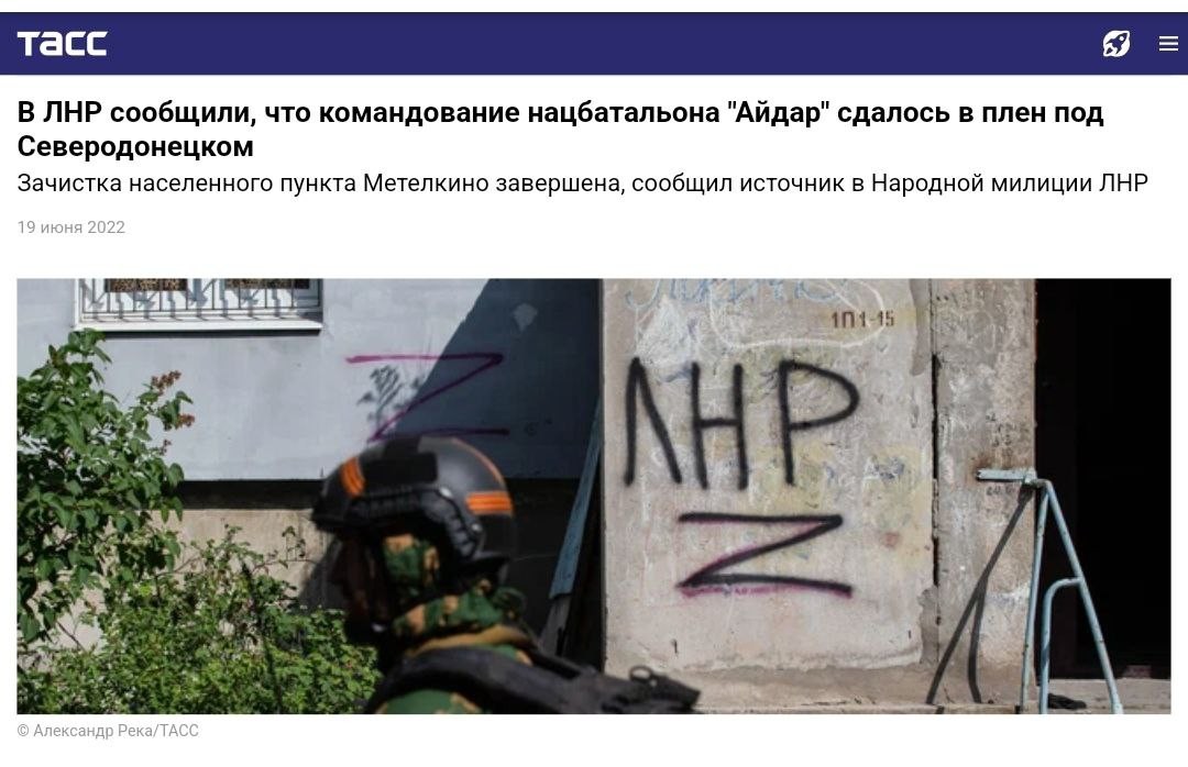 В пригороде Северодонецка, в Метелкино подтверждена сдача в плен айдаровцев, вместе со своими вожаками. Посёлок полностью зачищен, а совсем ещё недавно «непобедимые нацисты» дают показания о своих подвигах и рисуют на картах расположения своих «побратимов» в Лисичанске и пригородах.