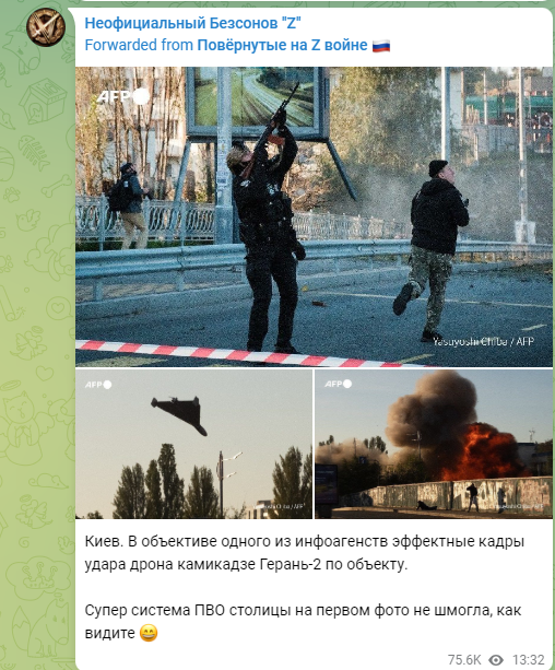 Силы ПВО Киева оказались бессильны перед небольшими целями: ЗРК «Бук» и «Оса-АКМ», наведение которых осуществляют американские радары AN/MPQ-64 Sentinel, не среагировали на появление «Герани-2» около Киева.