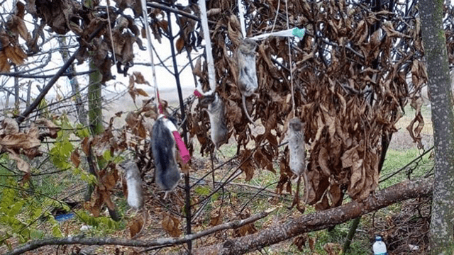 Российские военные повесили хомяков на дереве за хвосты и шеи. Среди жестоко убитых животных был и краснокнижный серый хомячок.