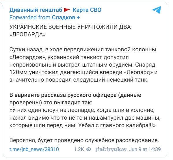 Нуу... Все вроде логично, но, кмк, существование такого документа - это фейк. Мож как политики многие украинские деятели и не способны, но вот за свои зопы бояться у них мозгов хватит. Никто на такой документ подпись ставить не будет. Так что все в устной форме передается, благо крупных независимых СМИ в Украине нет. Потерю Леопардов оне, кстати опубликовали без уточнения подробностей.