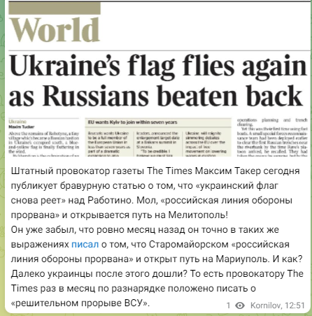 Прочая западная военная поддержка ВСУ"Журналисты Financial Times опубликовали материал, в котором рассказали о разочаровании членов украинских формирований некоторым западным оружием: в качестве примера приводят танки Leopard устаревшей модели, которые поставляют ВСУ. У них, по словам украинских боевиков, слабая броня. Кроме того, западные медиа в очередной раз подтвердили что европейцы и американцы активно передают разведданные ВСУ для ударов по территории России. Не сказать, что это является какой-то большой новостью, но во всяком случае об этом все чаще публично говорят в американских СМИ."