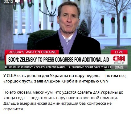 https://t.me/c/1842327063/222Салливан дно бочки увидел... Кирби вещает что горшок опустел.... Что дальше...? Может Байден про какую-нить опустевшую емкость скажет напоследок...? Ждемс...
