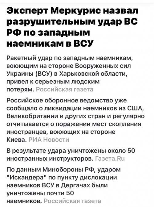 Вчера днем и ночью ракетные войска и ВКС наносили удары по целям в Харьковской области (УМПК), Вознесенске и Харькове (ОТРК), Херсоне, Полтавской, Черкасской, Киевской областях, Кривом Роге, Белой Церкви, Борисполе и Измаиле. (Герань) в последнем случае нанесен массированный удар в атаке было 15+ Гераней.