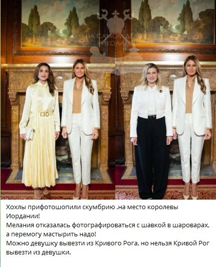 Я не ставила под сомнение фото Мелании с Ранией. Где по этим ссылкам переделанная фотка с Еленой Зеленской?