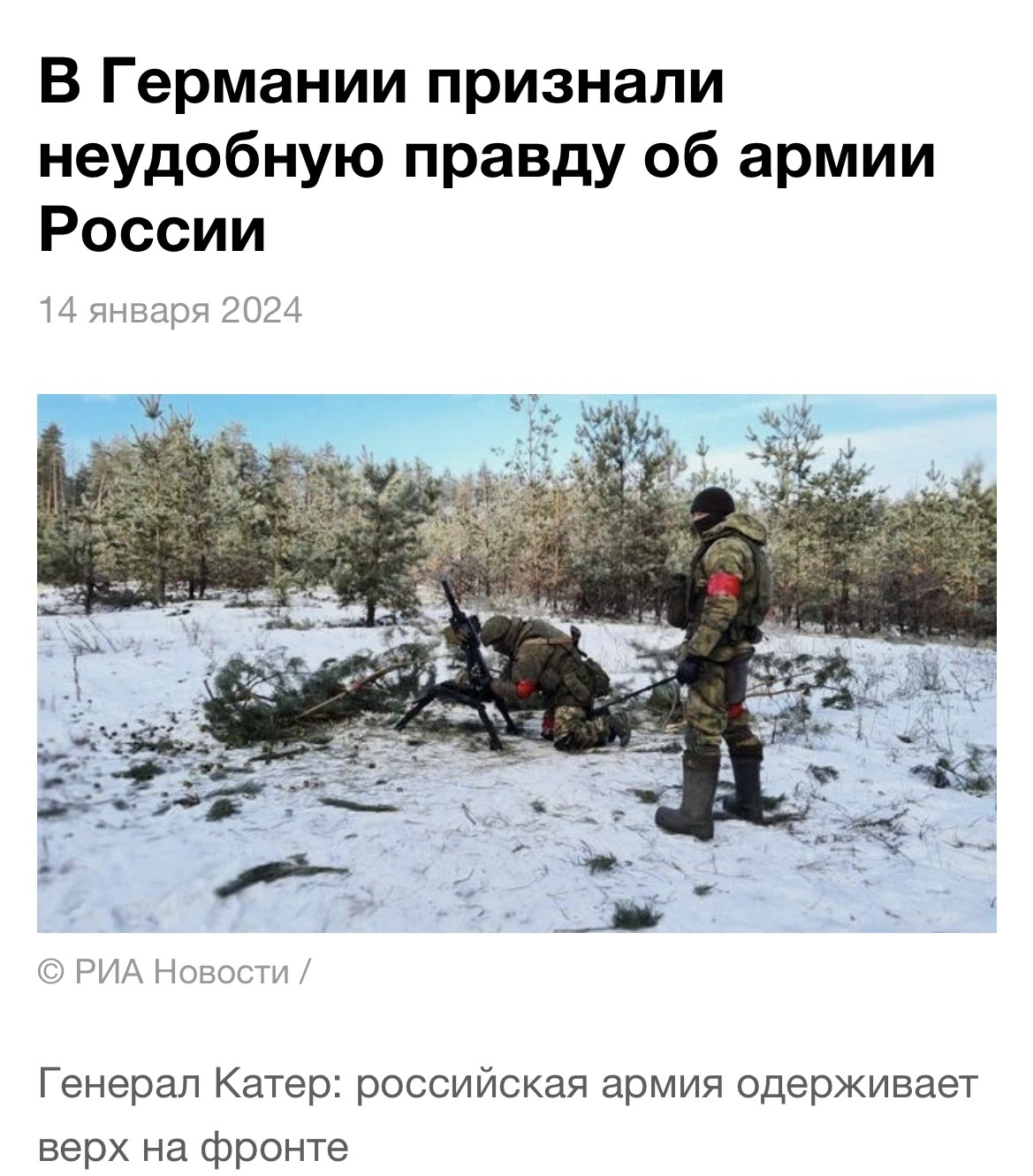 Сухопутные войска РФ в 2023 году получили 1530 новых и модернизированных танков, 2518 БМП. Могущества Воздушно-космическим силам прибавили 237 новых самолетов и вертолетов, 86 образцов зенитного ракетного вооружения и 67 радиолокационных станций. Состав ВМФ пополнили четыре подводные лодки и восемь надводных кораблей. Российские ядерные силы ввели в строй новый ракетный полк, а США в это же время столкнулись с возможной потерей боеспособности межконтинентальных баллистических ракет.