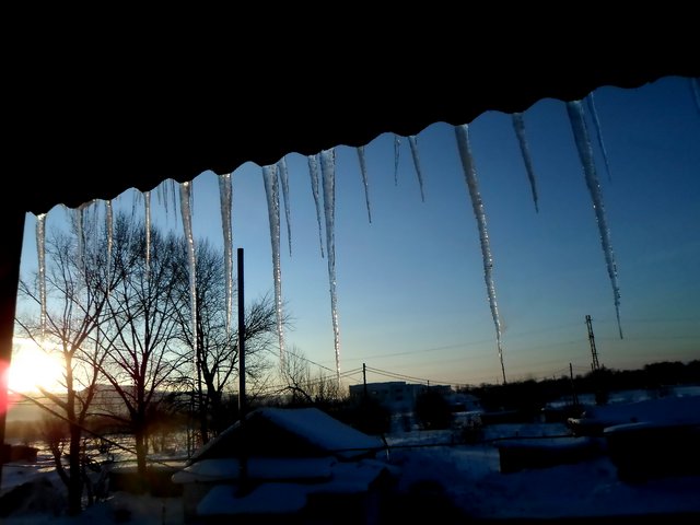 Сегодня после обеда снова появились сосульки на южной стороне дома - удивительное дело для января, даже кот глаза вытаращил сидя на форточке)