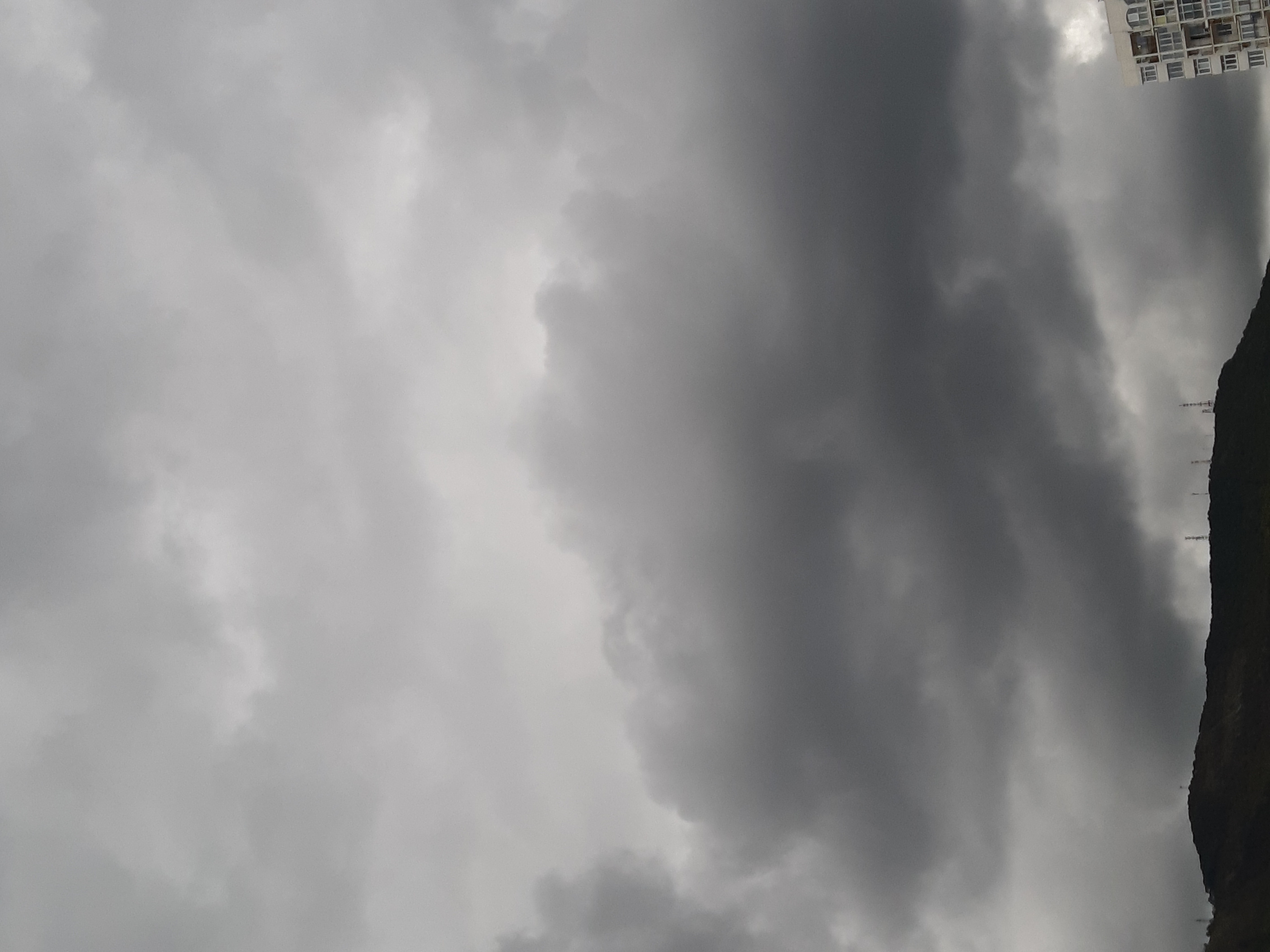 Как и прогнозировалось: небо затянуло хмурыми облаками, вот-вот пойдёт дождь, +9.