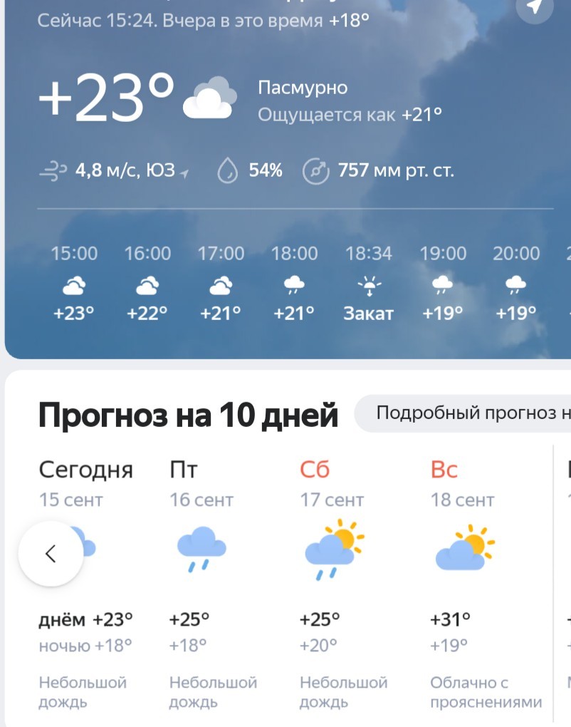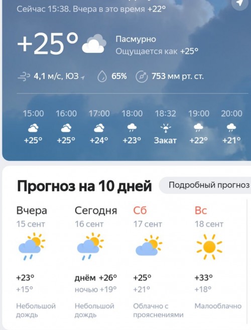 Днем было +23 облачно, без осадков)