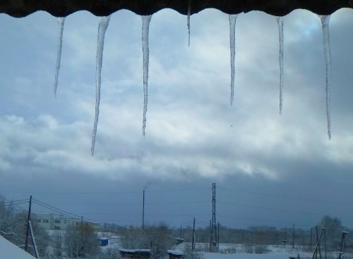С южной стороны дома со вчерашнего дня висят первые сосульки