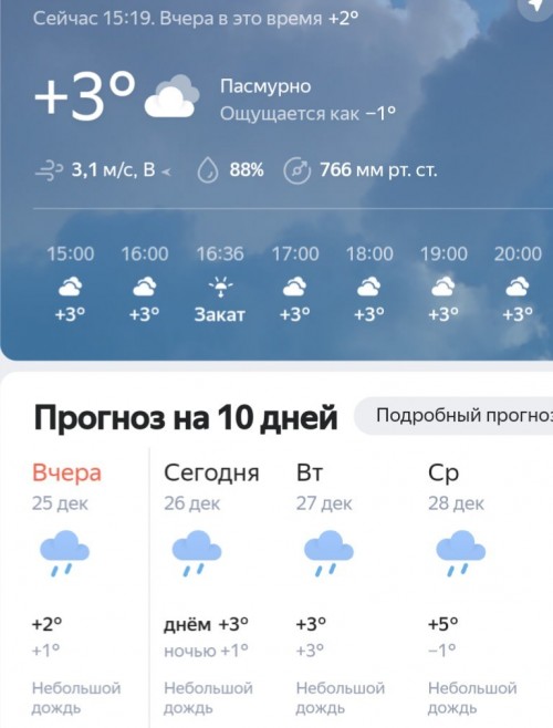 Не помню такого мягкого декабря - облачно. -4