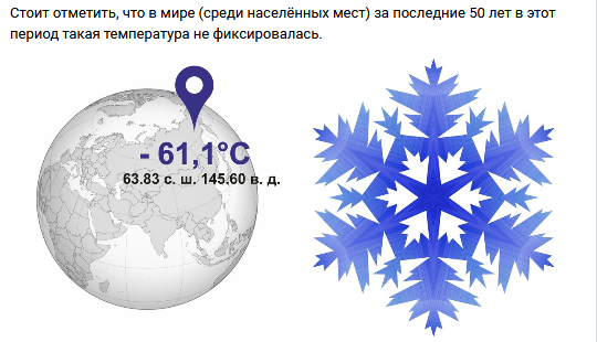 Самая холодрыга сегодня в посёлке Делянкир, Якутия, там сейчас -51.