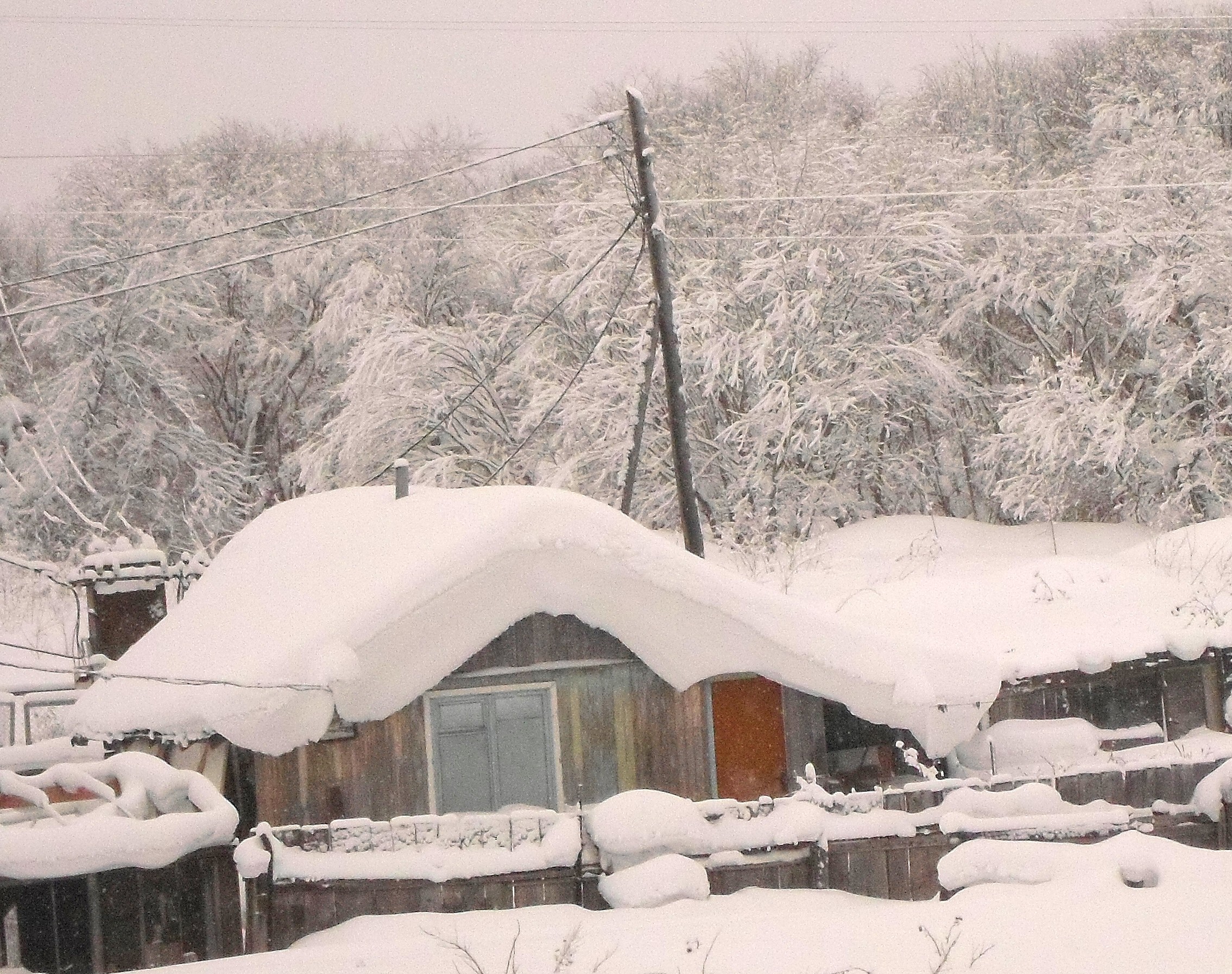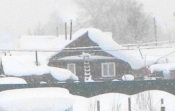 А сейчас поднимается ветер и начинает заметать, но не холодно, около - 15. Снега больше метра на ровном месте, сугробы ещё больше.